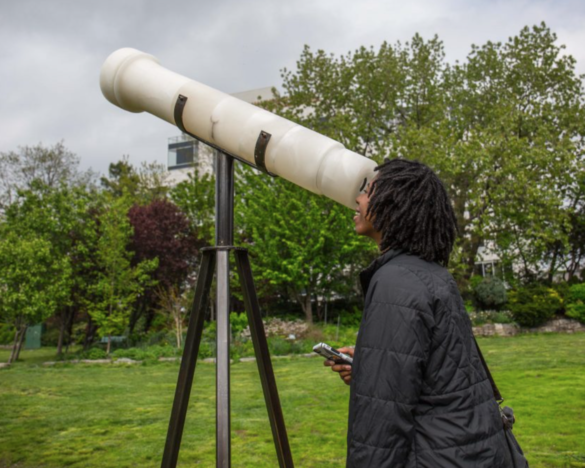 This exhibition is into a gateway to the universe, presenting artworks that consider space, time, and matter in relationship to celestial entities and earth-bound processes. In the open-air environment of the Long Island City waterfront park, the show uses scale to put the cosmos in context, creating connection points to space and time. Informed by Earth’s place amid a vast universe, these works zooms far out — featuring cosmic perspectives, various scales of time and space, and speculative gestures. Each artist’s own notions of time, history, space, and site challenge the reigning system regulated by technocratic and colonial standards.